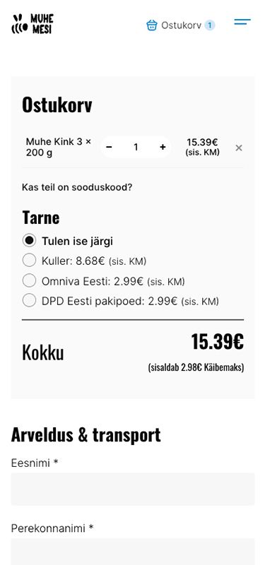 Loome ostukogemuse, kus klient leiab vajaliku kiiresti ja jõuab takistusteta kassani. Otsing, filtrid, variatsioonid, tarne, kassa ja ostuvormistamine on läbimõeldud.